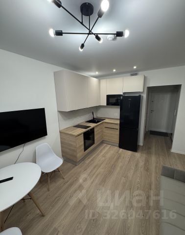 - кухня-гостиная: двухкамерный холодильник, встроенная индукционная плита, встроенный духовой шкаф и микроволновая печь, вытяжка, чайник, телевизор;