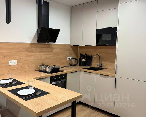 Техника: холодильник, плита с духовкой и вытяжкой, настольная посудомоечная машина, кондиционер, два телевизора, стиральная машина.