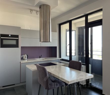 Кухня оборудована всем необходимым: фильтром для воды, посудомоечной машиной, варочной панелью, духовым шкафом, холодильником, вытяжкой, посудой и приборами.