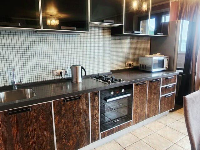 Встроенная кухня со всей бытовой техникой, столешницы, подоконники и полки из натурального камня во всей квартире!