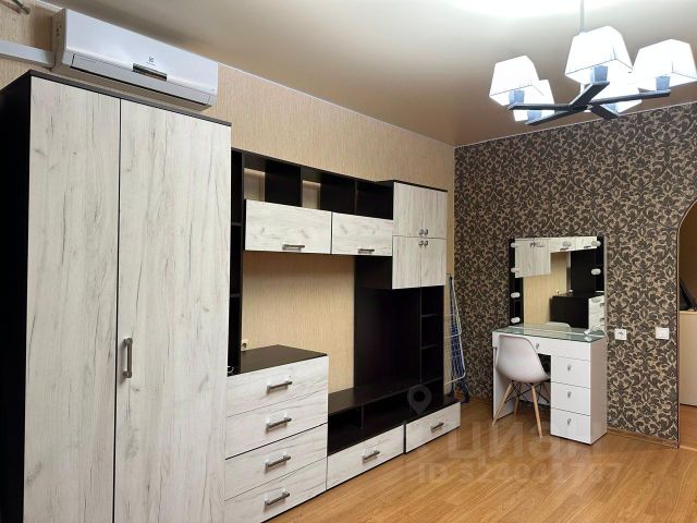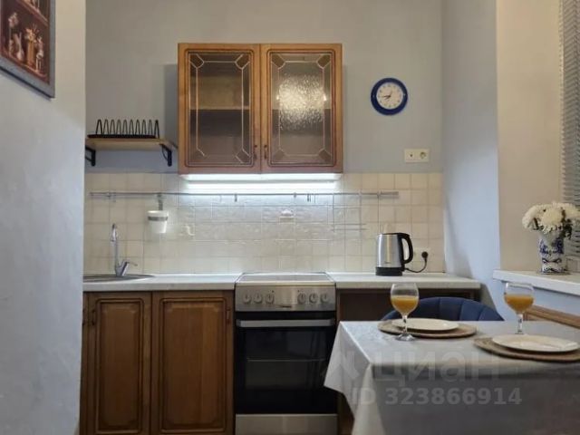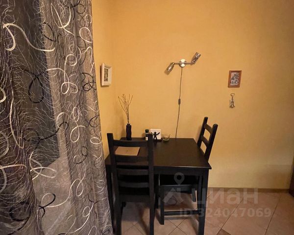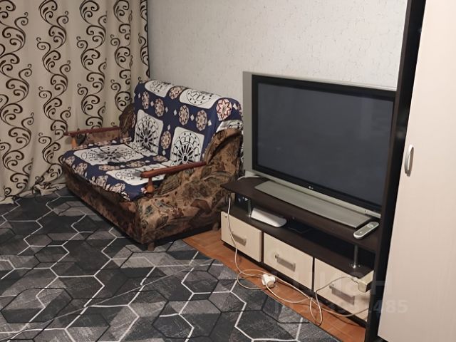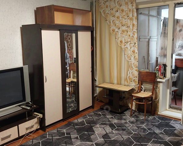 Планировка: большая комната, кухня с выходом на застекленный балкон, коридор. Окна выходят в зеленый двор. В комнате стоит двуспальная кровать, раскладывающийся диван, большая вместительная стенка, тумба, установлен кондиционер. На кухне - кухонный гарнитур, электроплита, обеденный столик, мягкое кресло, холодильник, телевизор. Чистый подъезд, благоустроенный двор, дом стоит в глубине двора, вдали от дороги.