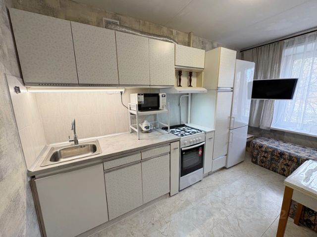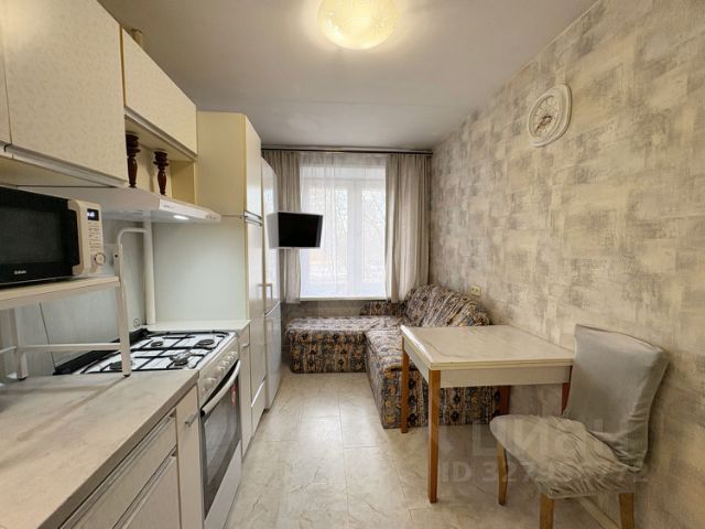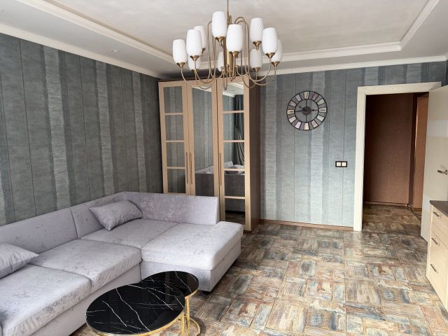 Мебель: куxoнный гаpнитуp со всей необходимой техникой, обеденный стол, диван, вместительный шкаф, кровать, журнальный столик.