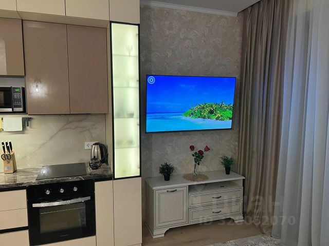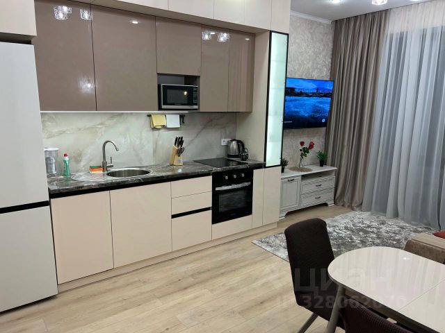 Кухня-гостиная 15 кв.м, изолированная спальная комната 13 кв.м, вместительная гардеробная комната 3.5 кв.м, совместный сан узел с душевой кабиной 4.5 кв.м, прихожая с красивым зеркалом и функциональными шкафами для хранения одежды и личных вещей. Так же во всей квартире полы с подогревом, что создает комфорт и уют.
