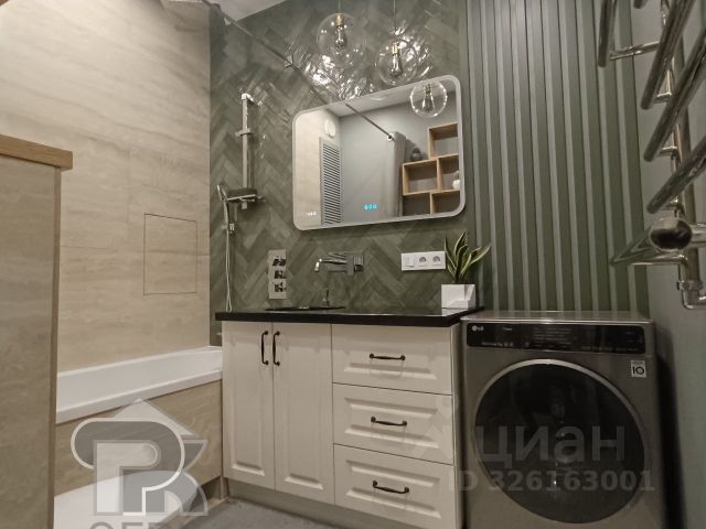 КУХНЯ: посудомойка, холодильник с морозилкой, электроплита на 4 конфорки с духовкой, вытяжка, гарнитур, фартук, столешница, мойка. ГОСТИНАЯ: раскладной стол на 4 персоны с рабочей зоной (розетки: езернет, USB, электро), 4 обеденных кресла, раскладной диван-еврокнижка на 3 персоны, кондиционер, стенка-витрина, комод, шкаф. КОМНАТА: 2-спальная кровать, тумба. ССУ: ванная с душем, туалет, навесной шкаф с раковиной, полотенцесушитель, зеркало с подсветкой, стиралка. КОРИДОР: гардеробная система, домофон, метал. вх. дверь.