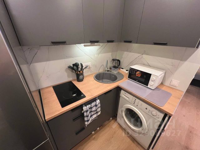 Квартира обустроена кухней и некоторой бытовой техникой. Холодильник и чайник, газовая плита и стиральная машина. Микроволновой печи нет, этот вопрос абсолютно решаемый.