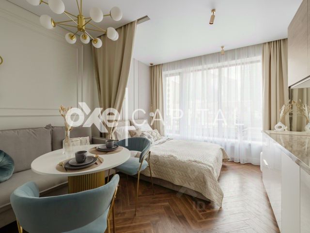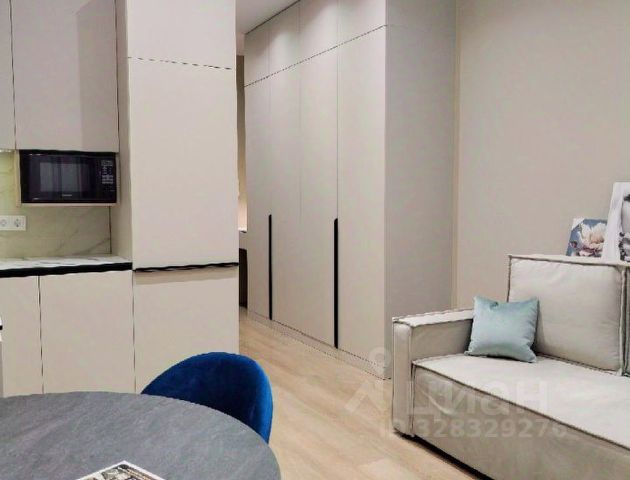 Лот fm33064. Возможен короткий срок аренды. Сдается впервые просторная студия с дизайнерским ремонтом в неоклассическом стиле. Планировка. Квартира разделена плотной шторой на 2 зоны: спальная и гостиная. В спальне стоит евро-кровать с прикроватными тумбами. А в гостиной- раскладной диван и обеденный стол со стульями. В коридоре размещен большой шкаф для хранения одежды. У окна стоит туалетный столик с большим зеркалом. По всей квартире установлены разные уровни искусственного освещения. Квартира полностью укомплектована мебелью и оснащена необходимой техникой: электроплита, микроволновка, тостер, кофемашинка, посудомоечная машинка и стиральная машинка с опцией сушки. На кухне установлен смеситель с водоочистителем. Расположение. ЖК Headliner находится в 3 минутах от станции МЦК Шелепиха и в 5 минутх от метро, до Москвы-Сити и Афимолла 15 минут пешком. Рядом с ЖК: продуктовые магазины, кафе, коворкинг, детские кружки и школы.