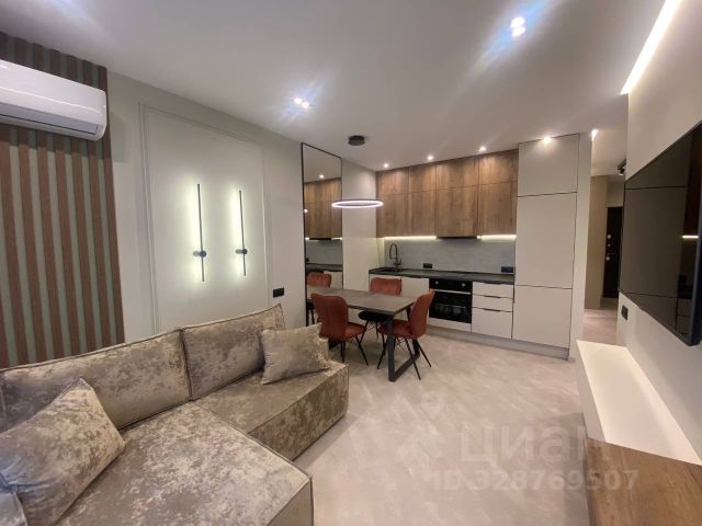 Красивая, уютная квартира. Хороший ремонт, делали для себя. Мебель современная, в идеальном состоянии. Вся бытовая техника, СВЧ, новый кондиционер. Встроенный кухонный гарнитур с встроенной ПСМ, духовым шкафом. Раздельный санузел в плитке, дорогая сантехника. БЕЗ балкона.