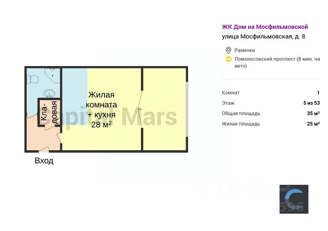 Впервые сдаётся уютная и стильная квартира-студия с совмещённым санузлом и дизайнерским ремонтом. Без депозита! Её можно посмотреть когда Вам удобно: бронируете время, забираете ключи и спокойно осматриваете. Если всё понравится, договор подпишем онлайн и будем поддерживать Вас на всех этапах аренды. В квартире есть: - Кухонный гарнитур; - Холодильник; - Посудомоечная машина; - Стиральная машина с функцией сушки; - Духовой шкаф с возможностью приготовления на пару; - Телевизор с диагональю 65 дюймов, оснащенный станцией "Алиса". Можно докупить необходимую мебель и технику в счёт арендной платы. Окна квартиры выходят на две стороны: присоединенная лоджия с панорамным остеклением открывает вид на улицу Мосфильмовская, а окна кухни и гостиной выходят в тихий двор Собственник готов заселить не более 2 взрослых жильцов с детьми и заключить договор с юридическим лицом. Можно с небольшим домашним питомцем по согласованию. Дом расположен в районе с развитой инфраструктурой, рядом находятся: - Супермаркет Азбука Вкуса, ресторан Bellagio, Кофемания; - Киностудия Мосфильм - Воробьевская набережная, природный заказник Воробьевы горы и Долина реки Сетунь, предлагающие множество маршрутов для пеших прогулок, велопрогулок и катания на самокате; - Смотровая площадка с захватывающими видами на Москву и МГУ имени Ломоносова. В пешей доступности - школа, детский сад, продуктовые магазины, кафе, медицинские центры, аптеки, салоны красоты, пункты выдачи маркетплейсов, фитнес-клуб. До МЦД-4 Поклонная - 16 минут пешком, до м. Киевская - 12 минут на общественном транспорте.