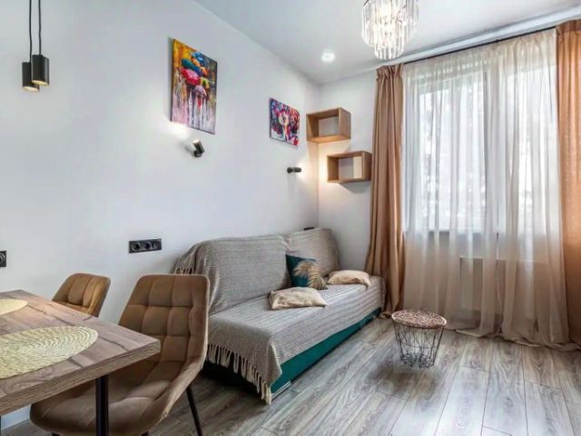Апартаменты - студия в ЖК Нормандия. Название студии Dream Catcher выбрано не случайно - большое количество зеленых искусственных цветов, дерева, ловец снов и балийский стиль. Интерьер выполнен в индонезийском стиле: всё деревянненькое и немного потёртое. Напротив кровати стоит большой телевизор 43" с функцией смарт ТВ от Яндекс. В дополнение подключена подписка "Яндекс плюс", которая позволяет бесплатно просматривать фильмы из Кинопоиска.