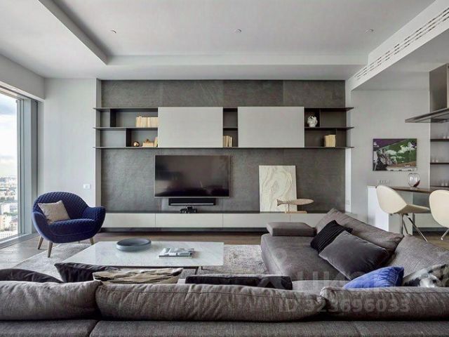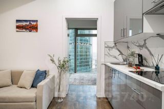 Главное об апартаментах: 31 этаж, 70 метров, кухня-гостиная, спальня, ванная, гардеробная. Мебель Garda Decor, системы хранения изготовлены на заказ, установлена система кондиционирования. Идеальны для одного или пары.