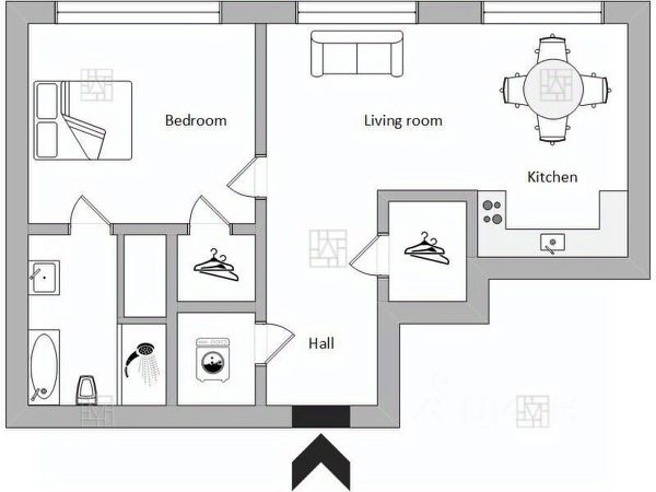 3. Высота потолков 3.1 м. Функциональная планировка: кухня-ниша, гостиная, спальня с мастер-гардеробом, прихожая с постирочной зоной, санузел с душевой.