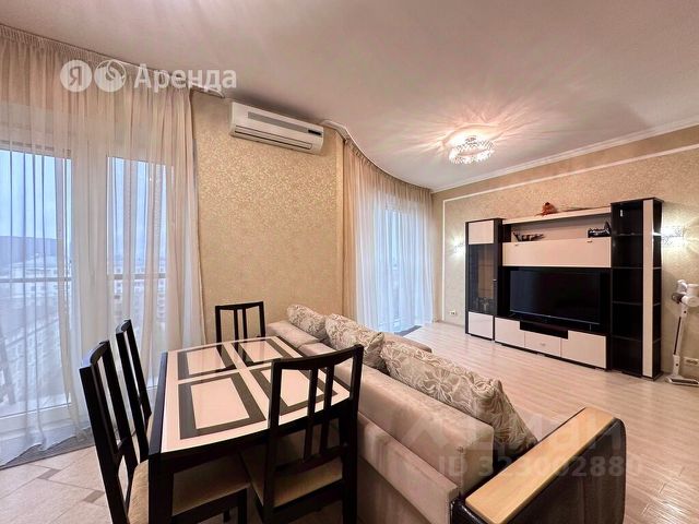 просторная кухня-гостиная полностью оборудована ( подогрев пола + кондиционер ) , выделена обеденная зона и зона отдыха .