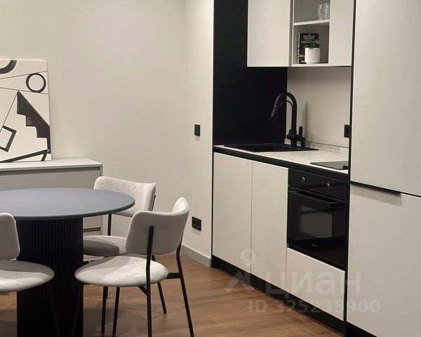 Просторная кухня-гостиная укомплектована кухней до потолка со столешницей из кварца, оснащена встроенной техникой Gorenje: холодильник, духовой шкаф, микроволновая печь, посудомоечная машина, индукционная 4-х конфорочная варочная панель, вытяжка, мойка Omoikiri, диспенсер.