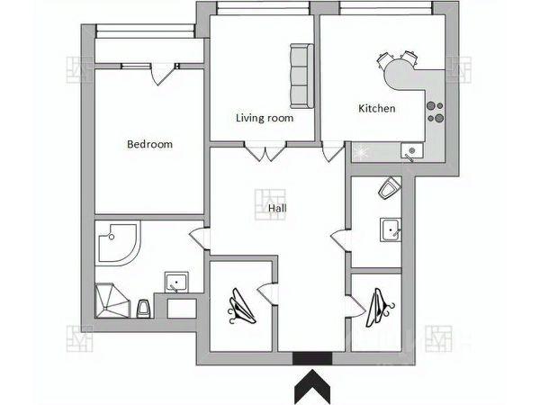 В прихожей расположен очень вместительный шкаф-купе. Диван в прихожей также оснащен достаточно вместительным местом для хранения.