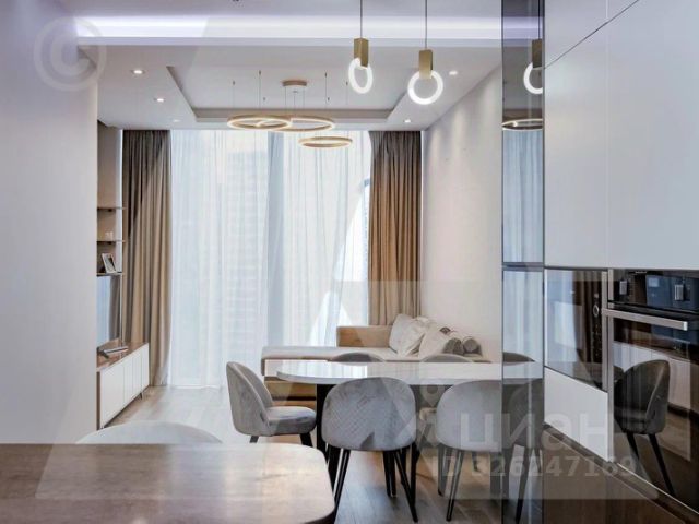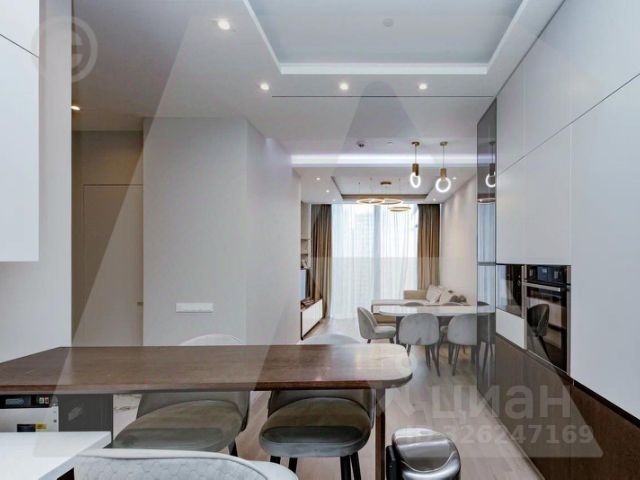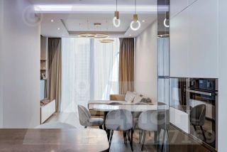 B апартаменте выполнен высококлассный ремонт: достойный уровень отделочных материалов, удобная и продуманная планировка, полная готовность жилого помещения для проживания. Конечно, в квартире продуманная и скрытая от глаз система хранения, есть зона отдыха, объединяющая гостиную и кухню, кухня оборудована по последнему слову техники фирмы "Miele" всем необходимым. Совмещенный, прекрасно оборудованный санузел, полы с подогревом, кондиционирование.