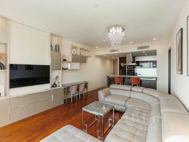 Главное об апартаментах: 31 этаж, 70 метров, кухня-гостиная, спальня, ванная, гардеробная. Мебель Garda Decor, системы хранения изготовлены на заказ, установлена система кондиционирования. Идеальны для одного или пары.