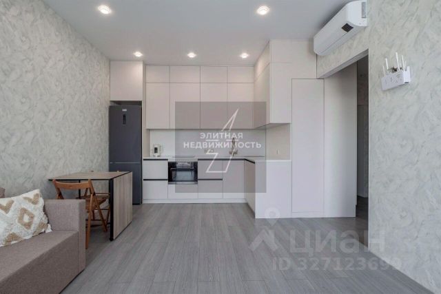 Кухня- настоящий рай для кулинара - оборудована практичной мебелью с встроенной техникой: варочная панель, духовка, вытяжка, посудомоечная машина (все -Electrolux), холодильник Liebherr. Кухня соединена с гостиной (17.7 кв.м), где разместились обеденный стол и гостевой гобеленовый диван, кондиционер, возможно установить телевизор и аудиосистему.
