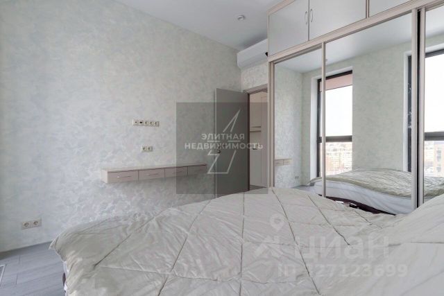 Общая площадь квартиры 68.5 кв.м. В спальне (19.8 кв.м) двуспальная кровать King size с удобным ортопедическим матрасом, просторный гардероб, тумбочки и комод, вся мебель - Италия, кондиционер. Два окна.
