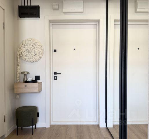 - Консольный столик и пуф при входе