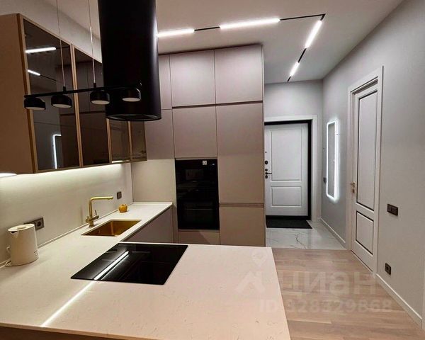 — Полностью оборудованная кухня: холодильник, посудомоечная машина (60 см), индукционная панель, духовка, микроволновка, вытяжка, установлен фильтр для воды, посуда, столовые приборы и сервиз на 6 персон