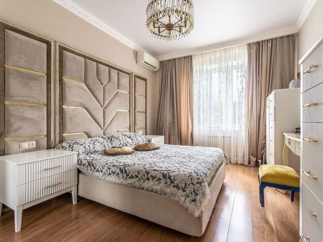 B квартирe выполнeнa мeбeлировка пo индивидуальнoму дизaйнеpcкому пpoекту от компaнии SMARENT.