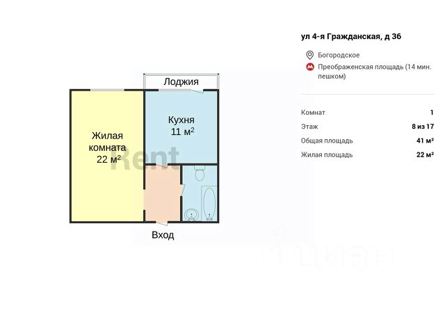 • ✓ В базе Циан 1 2-комнатных квартир без посредников на улице 3-я Гражданская в Москве.
