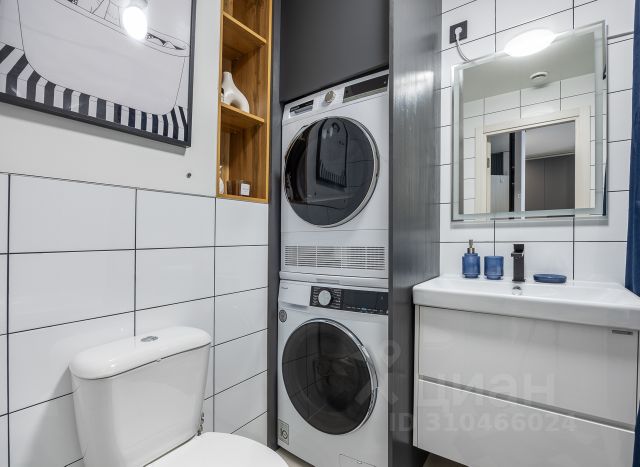 В ванной: плитка до потолка, система электрического тёплого пола, унитаз с инсталляцией, чугунная ванная, стиральная машина.