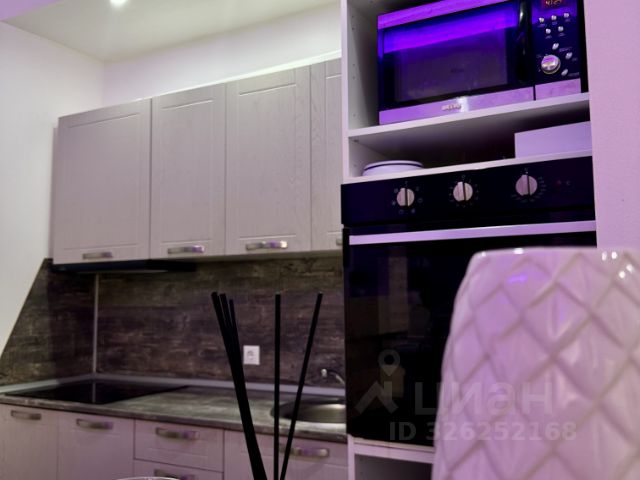 Мебель: большой шкаф в спальной комнате, двуспальная кровать. В кухне-гостиной: Диван раскладывающейся в двуспальное место, подвесные шкафы, телевизор премиум класса 65.