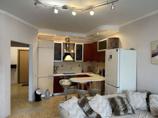 Общая площадь. 39кв. м, комната 21 кв. м, кухня 9кв. м (на кухне раскладная кушетка), большой разд. санузел, большие шкафы в прихожей и не только. Простая, но вся необходимая мебель: кухонный гарнитур (натуральная сосна), большой раскладной диван с удобным спальным местом, 2 кресла, ковёр, холодильник, стиральная-автомат, телевизор, электроплита с духовкой, микроволновка, пылесос, электрочайник.