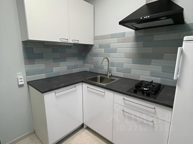 В зоне кухни: индукционная варочная панель, электрическая духовка, ПММ, вытяжка, холодильник. Смеситель с опцией подключения фильтра. Раскладной стол с приятными стульчиками. Много полок и ящиков для хранения.