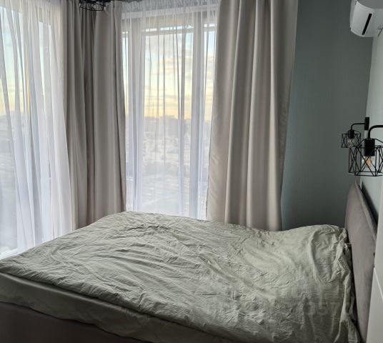 - изолированная спальня с двуспальной кроватью, ортопедическим матрасом, телевизором, большим шкафом для одежды, прикроватными тумбами, удобной консолью;