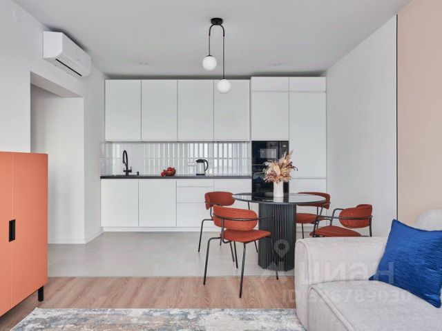 - просторная кухня-гостиная со встроенной техникой Bosch (холодильник, свч, духовой шкаф, варочная панель, посудомоечная машина, вытяжка, фильтр питьевой воды), кондиционер. Здесь вы можете расслабиться и набраться сил после насыщенного дня, устроившись на мягком диване или провести теплый вечер в кругу родных и друзей;