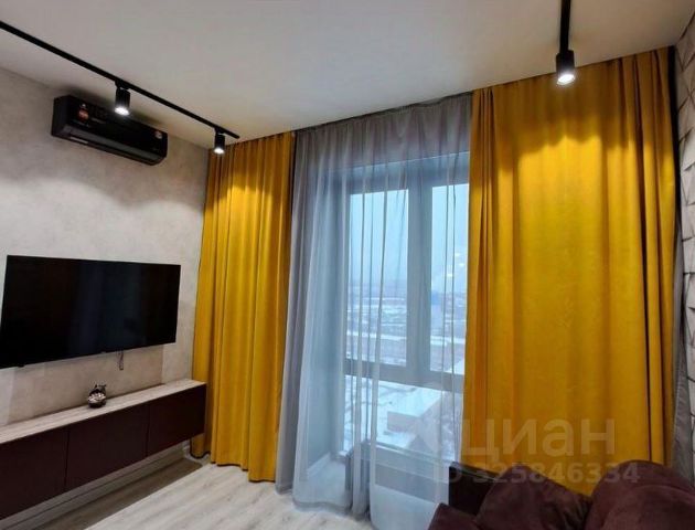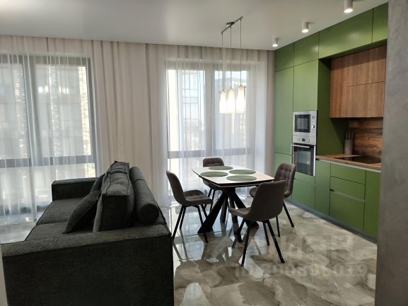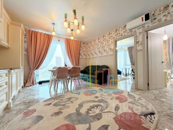 Светлая квартира 43 м² на высоком 20 этаже (потолки 2,8 м): огромная кухня 18 м², жилая площадь 14 м², изолированная планировка, совмещённый санузел с ванной, просторная гардеробная. Полный комплект премиум-техники и мебели: холодильник, посудомоечная и стиральная машины, сплит-системы, теплый пол, водонагреватель, телевизор, интернет, многоуровневое освещение — создана атмосфера уюта и отдыха.