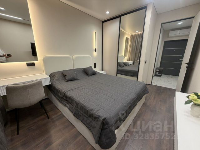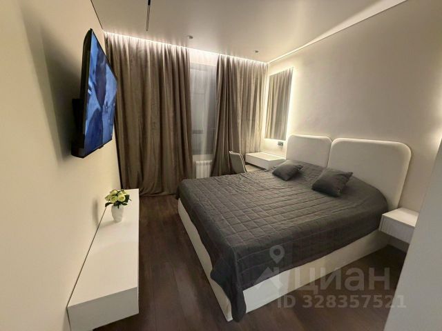* Изолированная спальня с большим спальным местом, тумбами, смарт тв 65 дюймов 4к, встроенным шкафом и отдельным хозяйским санузлом.