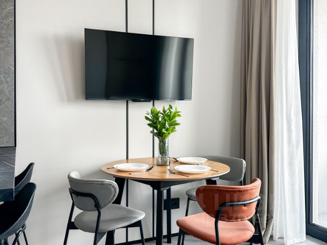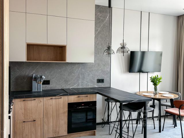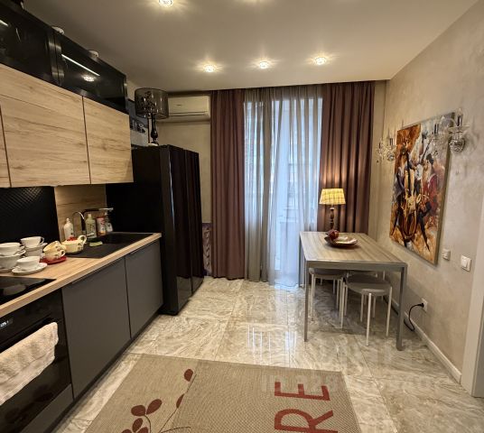 квартира после косметического ремонта , хорошая немецкая кухня , вся техника Аег, стиральная машина Miele , полностью вся мебель , новая кровать , новый запечатанный матрас. встроенные шкафы , гардеробная. зал совмещен с кухней , отдельно спальня . большая лоджия