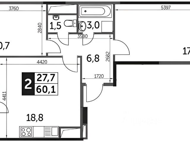От года, комм. платежи включены (без счётчиков), без комиссии, залог 70 000 ₽