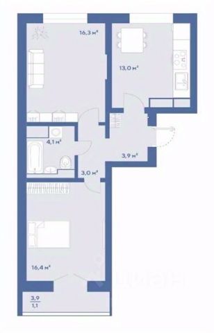 1-комн.кв. · 42,1 м² · 18/49 этаж