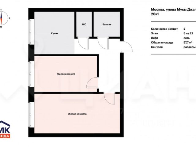 От года, комм. платежи включены (без счётчиков), комиссия 100%, залог 80 000 ₽