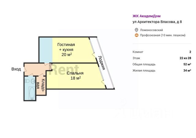 Сдаётся уютная двухкомнатная квартира в кирпичном доме на 3-м этаже из 15. Общая площадь 52 кв. м, из которых 32 кв. м жилая площадь, а кухня занимает 9 кв. м. Высота потолков 2.7 метра. Квартира расположена в пешей доступности от станции метро Вавиловская и метро новые черемушки В квартире сделан косметический ремонт, что создаёт светлую и приятную атмосферу. Окна выходят во двор, поэтому в квартире тихо и спокойно. В наличии вся необходимая мебель и техника: на кухне есть мебель, холодильник, в комнате мебель и телевизор, Лоджия в квартире также имеется, поэтому у вас будет дополнительное пространство для отдыха. Дом был построен в 1971 году и находится в хорошем состоянии. В нём есть пассажирский и грузовой лифты, мусоропровод, а также наземная парковка для вашего автомобиля за шлагбаумом Рядом с домом находятся все необходимые объекты инфраструктуры: школы, детские сады, клиники и магазины. Это обеспечит вам удобство в повседневной жизни и сэкономит время на поездки. Идеально подойдёт для проживания семейной пары с детьми и животными Ждём вас на просмотр! Записывайтесь уже сейчас, чтобы оценить все преимущества этой квартиры лично.