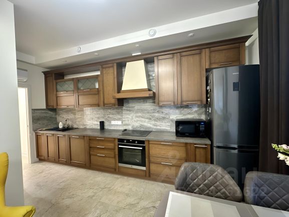 Квартира сдается со всей необходимой мебелью и бытовой техникой, сделан качественный дизайнерский евроремонт в светлых тонах, использованы премиального качества материалы. В квартире разные сценарии освещения, люстры, подвесы, очень красивые бра, подсветка штор, кровати, в ванной комнате зеркало Милан с красивой подсветкой, включая его поднимается настроение. В квартире имеется все для комфортной жизни, вся кухонная мебель, мебель в ванной комнате и в гардеробных изготовлена по индивидуальному проекту в компании Стильные кухни. Для вашего комфорта в квартире есть два кондиционера от фирмы Хайер, 2 телевизора диаметр 65 в гостиной и в спальне диаметр 55 Samsung. Встроенная кухня со столешницей и фартуком из искусственного камня, с духовкой и индукционной варочной панелью, большой холодильник, микроволновая печь, посудомоечная машина 60 см, это все фирмы Gorenje, еще кухню украшает модная вытяжка от Maunfeld. В квартире есть премиум качества стиральная и сушильная машины ASKO, есть водонагреватель, сантехника вся премиум качества от фирмы Sablo. Из мебели, диван раскладной с большим спальным местом и подушками, фирмы Диван.ру, двухспальная кровать 160 на 200 с очень качественным и комфортным ортопедическим матрасом МАТЕРЛЮКС. Дизайнерские тумбы и тумбочки в гостиной и в спальне фирмы Гарда Декор, стол керамогранит раздвижной со стульями сделаны на заказ. Окна декорированы шторами на подкладе и тюлью премиум качества сшитые на заказ, еще 2 красивые картины украшают стены создавая уют, сделаны на заказ у художников. В гостиной и в ванной комнате теплый пол. В квартире имеются две оборудованные вместительные гардеробные с вешалками, для модников и модниц. В квартире есть новая стремянка, гладильная доска, утюг и пылесос. Высокие потолки (почти 3 метра) добавляют ощущение простора и комфорта.