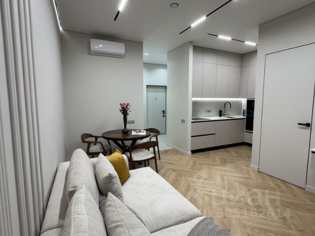 В ЖК Headliner предлагается двухкомнатная квартира с ремонтом в современном стиле. Планировка: кухня-гостиная, спальня, ванная комната. Высота потолков составляет 3.1м. Из окон квартиры открывается вид на Москва-Сити. ЖК Headliner - первый в России комплекс жилых небоскребов. На участке 6 га строится 10 высотных монолитных зданий, каждое с неповторимым архитектурным обликом, индивидуальной фактурой и расцветкой фасадов. Внешние стены выложены кирпичом, блоками или керамическим камнем. Многофункциональный квартал жилых небоскрёбов расположен в непосредственной близости от Москва-Сити и даёт максимально удобные условия для личного отдыха в шаговой доступности от бизнес-инфраструктуры. Внутреннее пространство дворов комплекса отделено от транспортных потоков, поэтому жилая зона безопасна и максимально удобна. Для удобства автовладельцев имеется вместительный паркинг. На первых этажах домов работают магазины, кафе и рестораны, банки, офисы и сервисные службы комплекса. Внутри квартала находятся детские сады, творческие студии, медицинские центры, спортивные клубы. В непосредственной близости расположены лучшие школы района.
