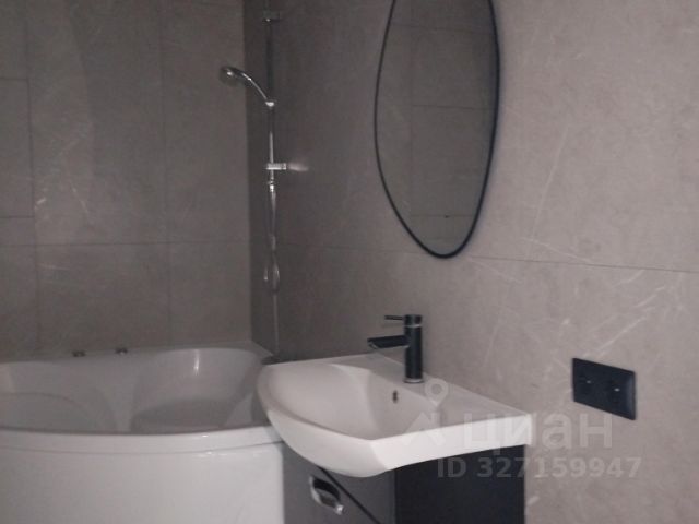 Ванна из литьевого мрамора, тропический душ, подвесной унитаз с инсталляцией, гигиенический душ, подвесная тумба с раковиной, встроенный шкаф со стиральной и сушильной машинами. Все смесители скрытого монтажа.