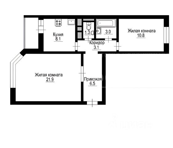 От года, комм. платежи включены (без счётчиков), комиссия 60%, залог 105 000 ₽
