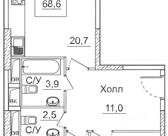 Площадь квартиры: 61 кв.м.