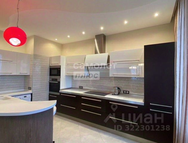 На кухне встроенный кухонный гарнитур из массива бука, качественная стеклокерамическая плита, СВЧ, вытяжка, духовой шкаф, большой современный холодильник, дополнительная центральная вентиляция. Есть необходимая посуда и столовые принадлежности.
