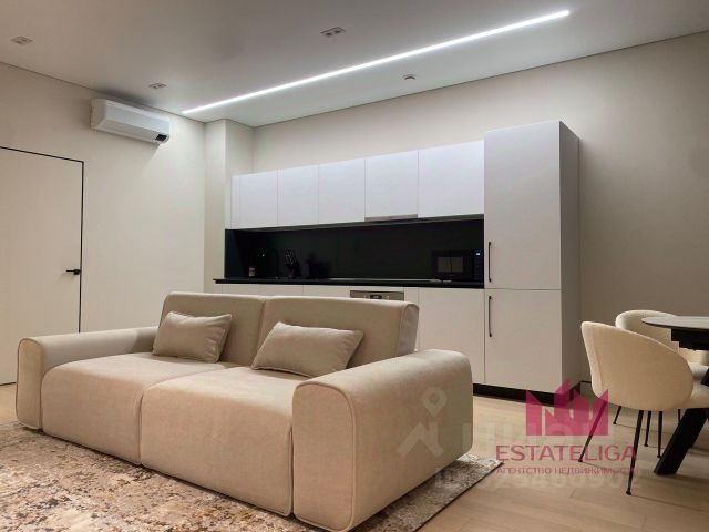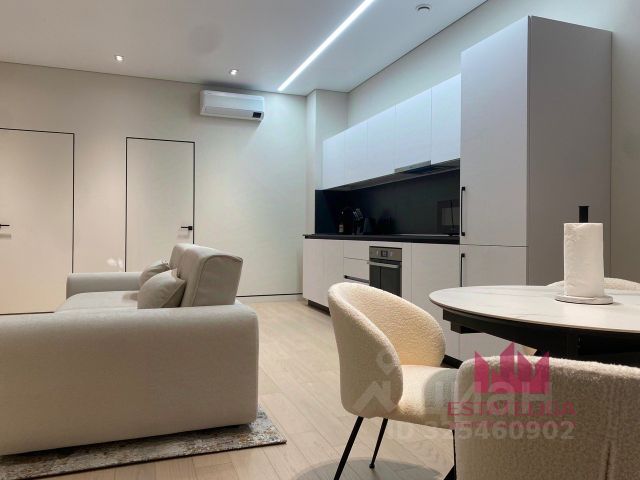 Планировка: просторная кухня-гостиная с выходом на лоджию и со всей необходимой бытовой техникой для комфортного проживания, изолированная спальня с удобной кроватью и просторным шкафом для одежды, совмещенный санузел, коридор с вместительным шкафом. Из техники — кондиционер, холодильник, посудомоечная машина, стиральная машина, встроенная микроволновка, электрическая варочная панель, встроенный духовой шкаф. За счет больших окон квартира днем наполнена светом, высота потолков 3,1 метра. Выполнен качественный ремонт.