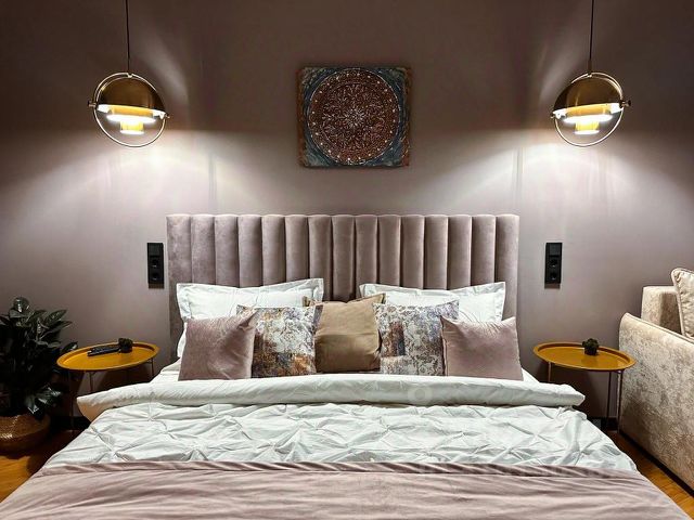 - Широкую двуспальную кровать с анатомическим матрасом и чистым постельным бельём для крепкого сна;