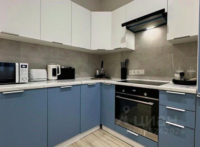- Полностью оборудованная кухонная зона. Для вашего удобства: холодильник, варочная панель, вытяжка, СВЧ-печь, чайник. Полный комплект посуды и столовых принадлежностей, welcome-набор (чай, сахар, сладкие угощения).