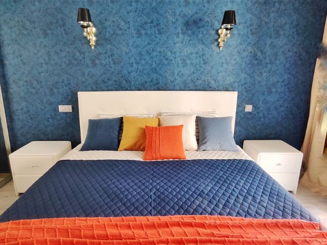 Двуспальную кровать с высоким полужестким матрасом и свежим постельным бельем;