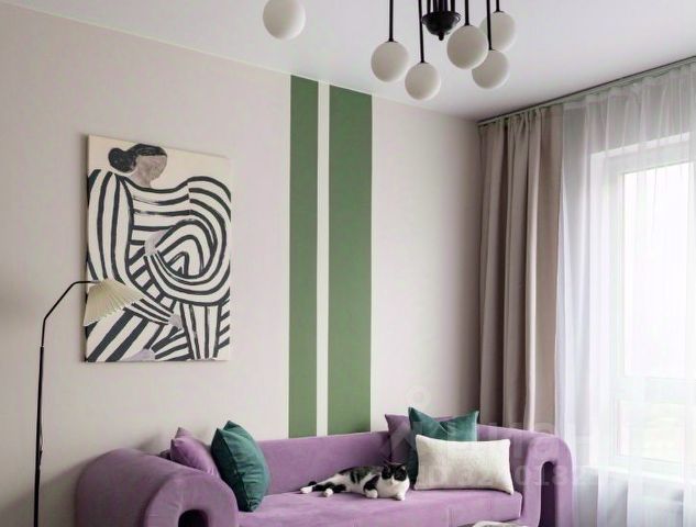 Светлые оттенки гостиной служат безмятежным фоном для разных сценариев. Лаунж-зона с мягким диваном приглашает провести вечер за книгой или сериалом. Окна выходят на тихую зелёную улицу, предлагая прогулку между городскими усадьбами и садом Баумана. Кухня, скрытая в стильном гарнитуре, отвечает на любые запросы: омлет со шпинатом на завтрак, запечённая цветная капуста с тахини на ужин и травяной чай для чтения новостей. Мебель вытягивается в единую линию, чтобы взгляд, ищущий горизонт, не встречал преград.